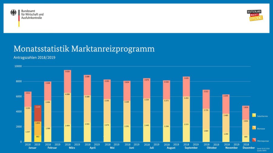 . Die Gesamtzahl der Förderanträge für eine Ökoheizung nahm gegenüber Dezember mit 4.866 kaum zu.