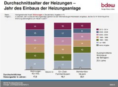“Die Ergebnisse zeigen deutlich, dass das Alter von Heizungsanlagen in Deutschland bedenklich ist”, sagt BDEW-Geschäftsführerin Hildegard Müller. Der Wärmemarkt müsse, um die Klimaschutzziele zu erreichen, stärker in den Fokus rücken. Das immense Potenzial, das zur Senkung von Kohlendioxidemissionen und zum Energiesparen beispielsweise bei der energetischen Gebäudesanierung vorhanden sei, müssten Bund und Länder entschieden angehen. In Deutschland entfallen 40 Prozent des Endenergieverbrauchs und etwa ein Drittel der Kohlendioxidemissionen auf den Wärmemarkt.
