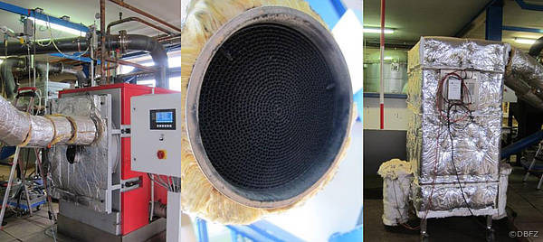 Dazu haben sie einen Katalysator sowie ein von der TU Cottbus-Senftenberg entwickelten Elektroabscheider in eine Anlage mit 49 kW Nennleistung integriert. Außerdem haben sie die Regelungsalgorithmen für die Luftzufuhr angepasst, wodurch sie eine geringere Emmissionen im Teillastbetrieb erreichen konnten. Derzeit prüft das DBFZ die Praxistauglichkeit der Maßnahmen bei Feld- und Demonstrationsmessungen an einem Kessel mit 120 kW Nennleistung in einem Gewerbebetrieb hinsichtlich ihrer Wirksamkeit und ihrer Handhabbarkeit für den Nutzer. Ergebnisse bestätigen die auf dem Prüfstand gemessenen Staubabscheidegrade. Abhängig vom eingesetzten Brennstoff und der Kesselleistung liegen sie zwischen 50 und 90 Prozent.
