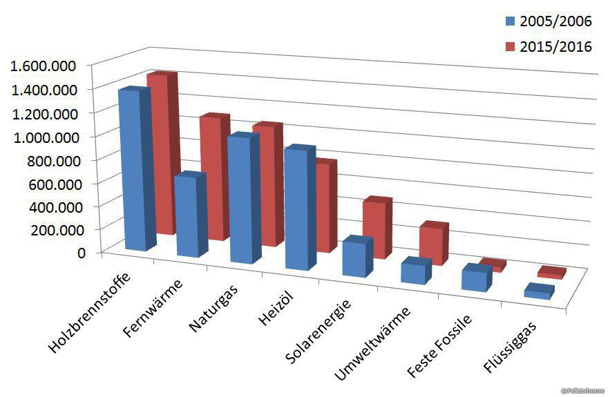 Als Gewinner am Raumwärmemarkt bezeichnet e7 Energie die Fernwärme. Seit der Heizperiode 2005/2006 stieg die Zahl der Haushalte, die an ein Fernwärmenetz angeschlossen sind, um fast 400.000 – ein Plus von 58 Prozent. Eine starke Steigerung hat es auch bei der Solarenergie (482.954 Wohnungen, plus 71 Prozent) und bei Wärmepumpen (315.624 Wohnungen, plus 102 Prozent) gegeben. Das Wachstum bei Holzbrennstoffen fiel mit drei Prozent schwach aus. Stark verloren haben die fossilen Brennstoffe Heizöl (769.479 Wohnungen, minus 23 Prozent) und Kohle/Koks (44.903 Wohnungen, minus 71 Prozent).