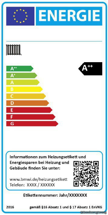 Das Effizienzlabel veranschaulicht eine allgemein berechnete, nicht gemessene Anlageneffizienz auf einer Skala von grün bis rot. Die Labelklassen reichen von A++ bis E. Am 26. September 2019 kommt die Klasse A+++ hinzu, Klasse E entfällt. Mit A+++ bis A+ werden Geräte eingestuft, die erneuerbare Energien oder Kraft-Wärme-Kopplung nutzen. A bis D bekommen fossile Heizkessel. Alte Holz- und Pelletsheizungen benötigen kein Effizienzlabel. Es wird seit 2016 schrittweise eingeführt
