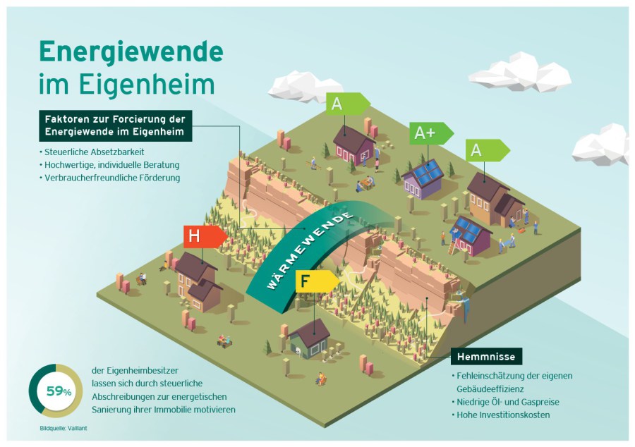 79 Prozent finden Klimaschutz wichtig, 68 Prozent wollen einen persönlichen Beitrag zur Energiewende leisten und 59 Prozent wünschen sich eine steuerliche Abschreibung energetischer Modernisierungsmaßnahmen. Das sind drei Ergebnisse aus einer Befragung unter 1.043 Verbraucherinnen und Verbrauchern, die das Heiztechnikunternehmen Vaillant zusammen mit der Deutschen Umwelthilfe (DUH) durchgeführt hat.