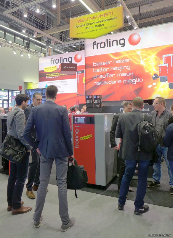Ökofen erweitert die Modellereihe Pellematic Condens um ein Gerät mit 32 Kilowatt. Allerdings soll es erst im kommenden Jahr erhältlich sein. Bei der ISH präsentierte das Unternehmen die künftige Leistungsgröße. Sie ließ sich am Messestand nicht nur von außen betrachten, sondern über ein Virtual Reality Game auch von innen. Fröling präsentierte in Wels seinen neu entwickelten Pellets-Brennwertkessel PE1c. Das Unternehmen bietet ihn außer mit einem Abgaswärmetauscher optional mit einem integrierten Partikelabscheider an. Auf dem Messestand von Herz Energietechnik gab es dagegen den ersten Hackgutkessel mit Abgaskondensation zu sehen. Den Firematic Condensation 30/40 bietet die Firma in zwei Leistungsgrößen mit 30 und 40 Kilowatt an.