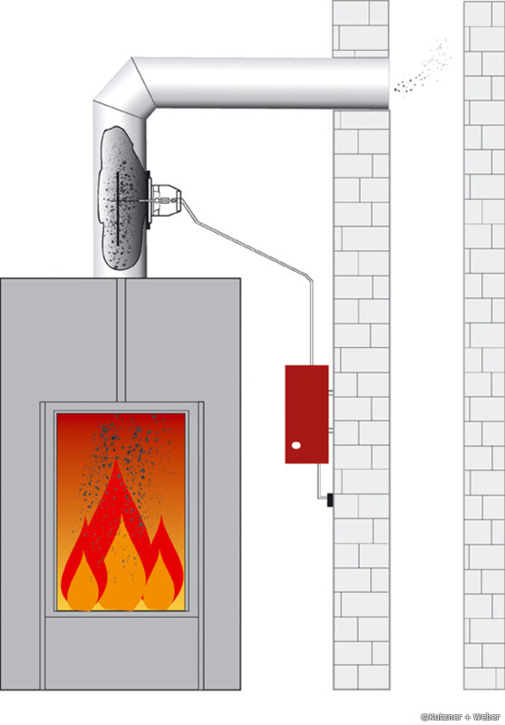 . So lässt sich die Menge auch mikrofeiner Staubpartikel mit Durchmessern von weniger als 2,5 Mikrometer im Rauchgas senken. Die Staubschicht im Abgasrohr kann der Schornsteinfeger bei seinen Kehrarbeiten problemlos beseitigen.