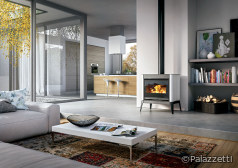 Die Giselle-Öfen sind 190 Kilogramm schwer und bieten 9,5 Kilowatt Leistung. Palazzetti bietet Giselle außerdem in einer Version für Holzpellets an. Die aus Gusseisen hergestellte Brennschale des vollautomatischen Ecofire Pelletseinsatzes Small 54 liefert eine Leistung von 6 kW