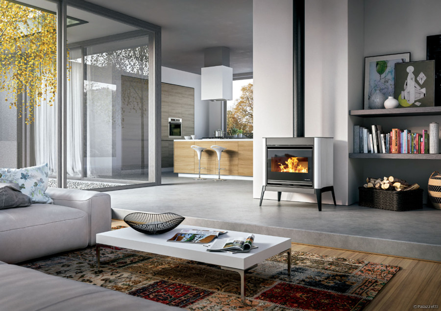 Herzstück von Giselle ist der Ecopalex Glass 66. Die aus Gusseisen gefertigte und mit dem System der Nachverbrennung ausgestattete Feuerstätte ist für das Heizen durch Abstrahlung und natürliche Luftkonvektion konzipiert. Das neue System zur Regelung der Verbrennungsluft bietet laut Palazzetti eine perfekte Steuerung der Flamme hinsichtlich Stärke und Dauer.