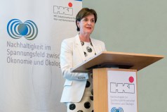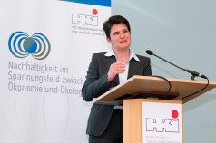 Nachhaltige Entwicklung weltweit ermöglichen und fördern, hat sich die GIZ – ein Bundes-unternehmen – zum Ziel gesetzt. Aus dieser Perspektive erläuterte Tanja Gönner, Vorstandssprecherin der GIZ und ehemalige Umweltministerin von Baden-Württemberg, das Thema. Nachhaltigkeit, sowohl ökonomisch, ökologisch als auch sozial, müsse zwangsweise global betrachtet werden