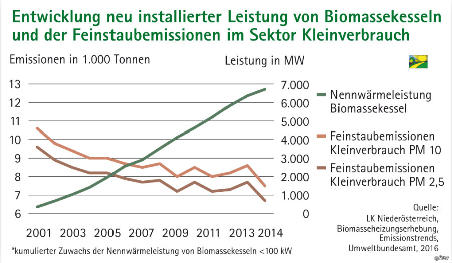 Als Grund für die geringeren Feinstaubemissionen nennt der ÖBV die verbesserte Verbrennungstechnik moderner Holheizungen. Besonders große Effekte könne der Ersatz alter Festbrennstoffanlagen durch neue, moderne Geräte bringen. Eine Studie der Johannes Kepler Universität in Linz belege, dass dadurch rund 90 Prozent der Feinstaubemissionen eingespart werden würden. Deutschland beweise mit seiner Bundesimmissionsschutzverordnung, dass sich der Ersatz von Altanlagen verpflichtend regeln lasse. Der ÖBV mahnt zu einer ganzheitlichen Betrachtung, wenn es darum geht, die Schadstoffemissionen zu bewerten. Es sei unverzichtbar, dass sowohl die Kohlendioxidabgabe als auch Feinstaubemissionen bewertet würden. Beiträge zum Klimaschutz, zur Unabhängigkeit der Energieversorgung, zur regionalen Wertschöpfung und zur Nachhaltigkeit dürften jedoch nicht vernachlässigt werden