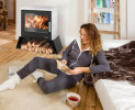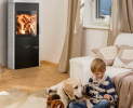 Die neuen Modelle des Kaminofen-Sortiments bestechen mit extra großem Sichtfenster oder 3-Seiten-Sichtfenster und lassen haut-nahes Kaminfeuer-Feeling aufkommen. So schafft beispielsweise der neue „WIEN easy“ aus der easy-Serie, spezieller aus der Produktlinie „home“, Rundum-Kaminfeuerromantik fürs Wohnzimmer – sowohl im vorderen Sichtfenster als auch auf beiden Seiten links und rechts. Die Herausforderung bei der Entwicklung dieses neuen Modells: der schmale Rahmen zwischen den Sichtfenstern musste massiver denn je sein. Das Ergebnis kann sich sehen lassen: In edlem perl-schwarz plus einem offenen oder geschlossenen Holzfach punktet das neue Modell auf ganzer Linie.
