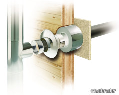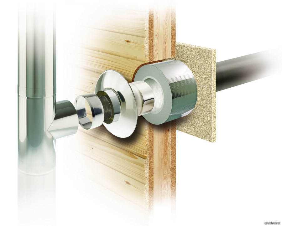 Mit den vorgefertigten Wanddurchführungen von Schräder können Wanddurchbrüche für Schornsteine wesentlich kleiner ausfallen als bei herkömmlicher Bauweise. Sie lassen sich einfach und schnell montieren. Die Wand wird an der gewünschten Stelle geöffnet, anschließend die Wanddurchführung eingesetzt und fixiert. Großflächige Durchbrüche und aufwändige Putzarbeiten braucht es nicht.