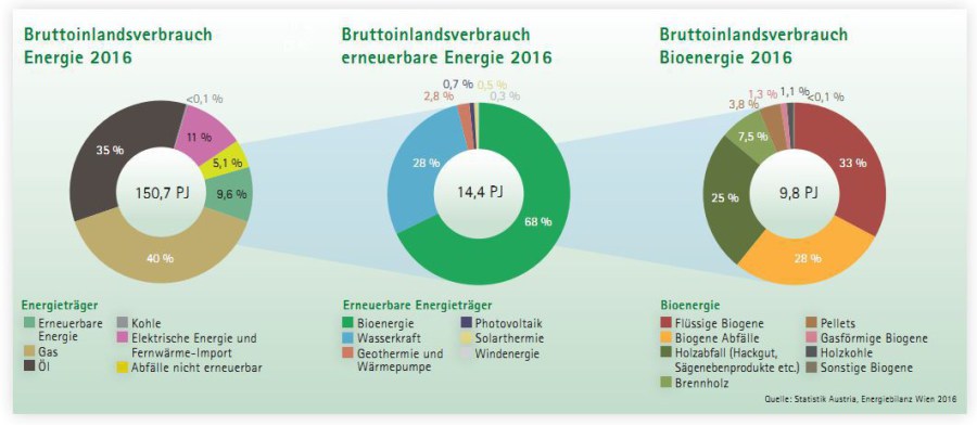 Wien will den Einsatz erneuerbarer Energien forcieren. Die Stadt plant in seiner Rahmenstrategie, ihren Anteil am Endenergieverbrauch bis 2020 auf 20 Prozent zu steigern. Bis 2050 soll die Hälfte des Energieverbrauchs mit ihnen gedeckt werden. Eine neue Bauordnung, die in Neubauten den Einbau von Ölkesseln verbietet und für Sanierungen die Dämmung der obersten Geschoßdecke vorschreibt, soll im Herbst beschlossen werden. Denn bislang dominiert Erdgas zu über der Hälfte den Raumwärmeverbrauch. 409.000 Wohneinheiten werden von Erdgasheizungen versorgt. Etwas weniger mit ebenfalls überwiegend aus Erdgas erzeugter Fernwärme (392.000 Haushalte). Die Zahl der Wohnungen mit Biomassekesseln hat sich in den vergangenen zwölf Jahren um rund 2.000 auf etwa 12.000 erhöht. Im gleichen Zeitraum ist die Anzahl der Ölheizungen von 57.000 auf 31.000 gesunken. Jedoch haben die niedrigen Ölpreise in den vergangenen zwei Jahren laut ÖBV wieder für eine Zunahme gesorgt. Solaranlagen oder Wärmepumpen sind erst bei 8.600 Haushalten installiert.