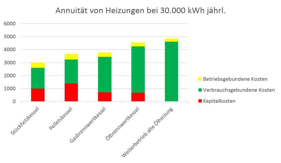 Zweiter Vergleich: jährlich 30.000 kWh Heizenergiebedarf